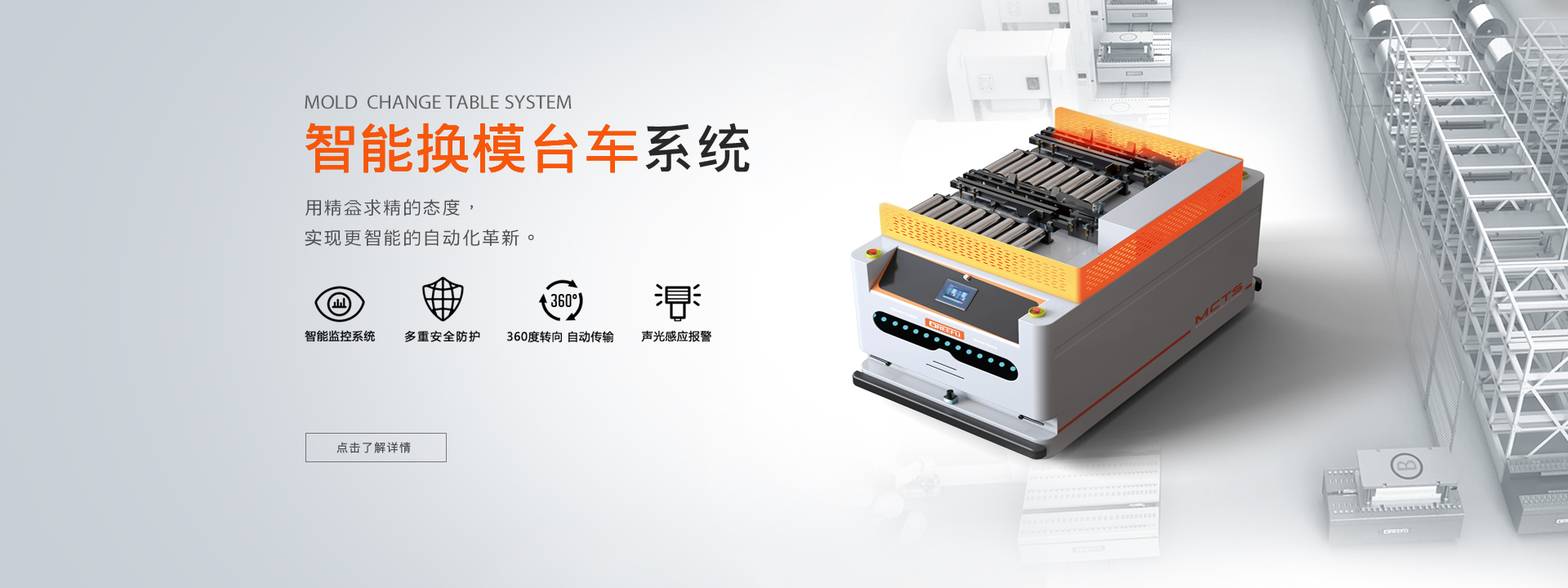 面對市場不斷出現(xiàn)的新挑戰(zhàn),格萊富助力企業(yè)發(fā)展,為工業(yè)生產(chǎn)提供模具裝夾、模具快換、模具搬運(yùn)、模具倉儲(chǔ)等完善的換模自動(dòng)化整體解決方案。使企業(yè)不但實(shí)現(xiàn)模具快速更換、智能轉(zhuǎn)運(yùn)、精益生產(chǎn),還提高效率,優(yōu)化工藝,強(qiáng)化競爭優(yōu)勢...了解更多